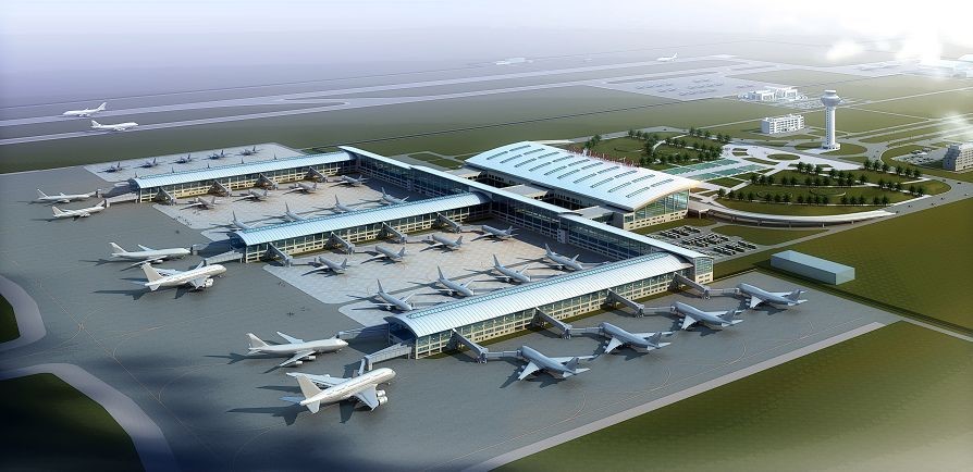 該機(jī)場一期規(guī)劃按年旅客吞吐量1500萬人次,年起降10萬架次,貨郵吞吐量5萬噸的容量進(jìn)行設(shè)計(jì)。建設(shè)4F和4E兩個(gè)飛行區(qū),同時(shí)建設(shè)相關(guān)配套輔助設(shè)施,如航管樓、雷達(dá)站、變電站、供水站、污水處理站、供油、貨運(yùn)庫等。機(jī)場各類建筑面積達(dá)50萬㎡(其中航站樓建筑面積18.5萬㎡);道路和綠化面積120萬㎡。
